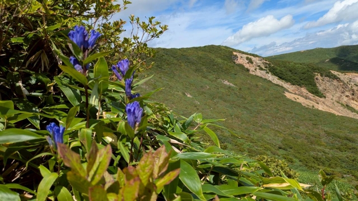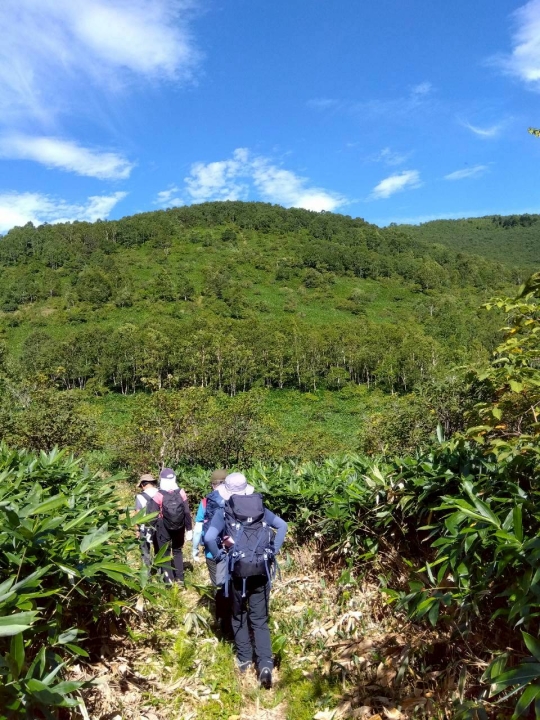 野反峠休憩舎からなだらかな登りを歩き続けていると、両サイドには多くの花が綺麗にさいていました。「もう少し早ければ良かった」とメンバーの声が聞こえました。