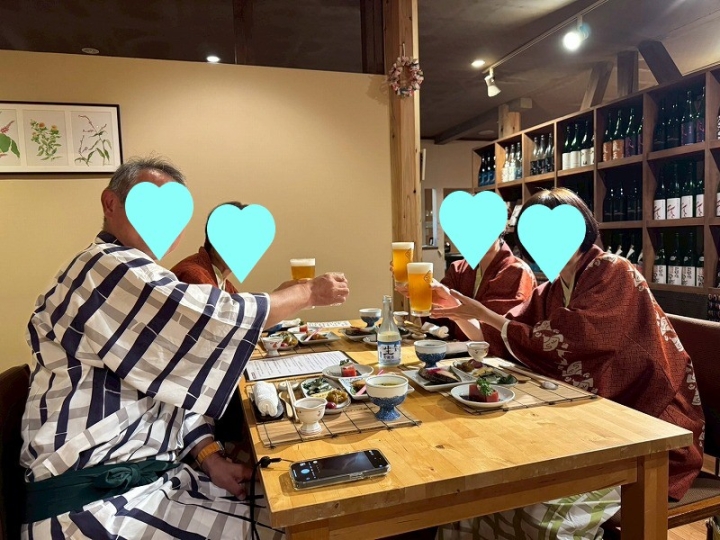 山行計画書で峩々温泉これなんて読むの?からはじまりました。がが温泉・・レディ・ガガか・・と違うだろう。初日は朝5時に黒磯板室ICに集合して、出発:刈田峠7:50到着:登山スタート8:00⇒屏風岳10:00(ちょっと早いぞ)⇒南屏風岳11:30(ランチ)⇒旅館のチェックインが15:00なので調整しつつ、刈田峠に14:50帰着(just on time)スタート時は、ガスがかかり視界が悪かったのですが、レイコさまのおん念ではなく、念力で、徐々に視界が晴れ、紅葉が素晴らしい山の景観と共に広がりました。山行中に雨でも温泉旅館だけは行きましょうね!と言っていたメンバーの期待度は高く、旅館へ向けてスタートしました。着くなりウエルカムドリンクと塩釜で歓迎です。なかなかいいぞと皆で盛り上がりました。その後部屋に通され、秘湯の体験です。単純泉で炭酸含有量が多く胃腸に良いとされている、内湯と露天風呂を堪能し、待ちに待ったビールタイム、、生ビールがうまい。その後、丁寧に調理された夕食をいただき(美味しかった)もう一度温泉につかり、夜の打合せを実施して(それにしてもマナブさんお酒強い)就寝へ、翌朝は5時起きで天空の露天風呂に入り、朝食、この料理も丁寧に調理され、みなさんお代わりをいただいていました。宿でゆっくりして9:00に2日目の名号峰山行スタートです。名号峰は林間コースで景色は途中で少ししか見えず歩き続ける事3時間やっと山頂に到着です。山頂の景色は素晴らしかったです。この日は暑く汗をいっぱいかいたので、帰りにまた温泉に入って帰ろうとの事になり、遠刈田温泉に立ち寄り温泉と、お土産の三角揚げを買って帰途につきました。紅葉と温泉三昧な山行でした。みなさんありがとうございました。最後に日本秘湯を守る会ではスタンプ帳を用意してあり、スタンプが10個溜まると1泊無料招待があるそうです。(これはオフレコですが、マナブさんは現在9個で次はどこに行こうか悩んでいるみたいです)