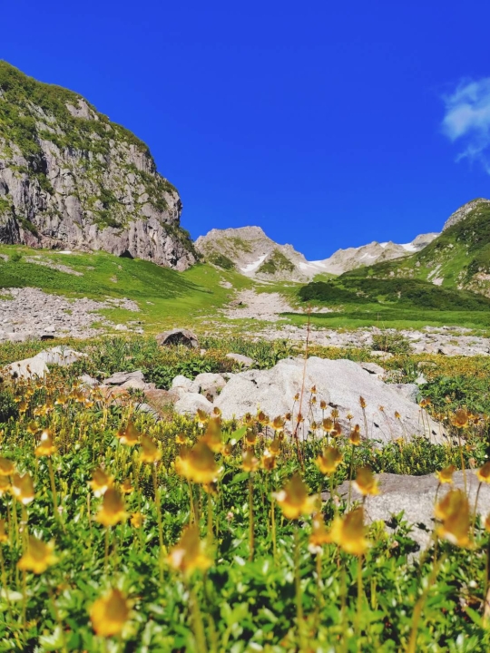 その後は、伏拝岳、文殊岳コースを経て、鳥海湖周回コースへ。ここでは、見事なお花畑が。まさにアルプスの少女ハイジの世界を満喫しました。