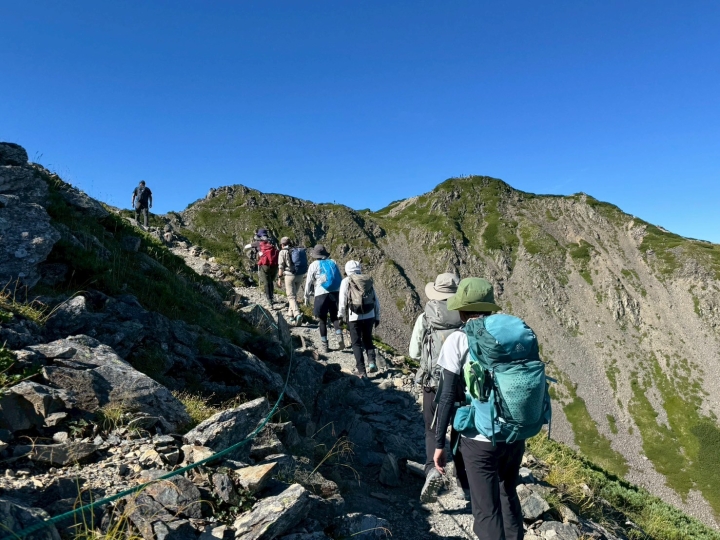 越後三山の最高峰に挑む。初日、中ノ岳に登頂し、頂上近くの避難小屋に宿泊。翌日、来た道を下山するコースである。累積標高差約1,800mを登り下山する。