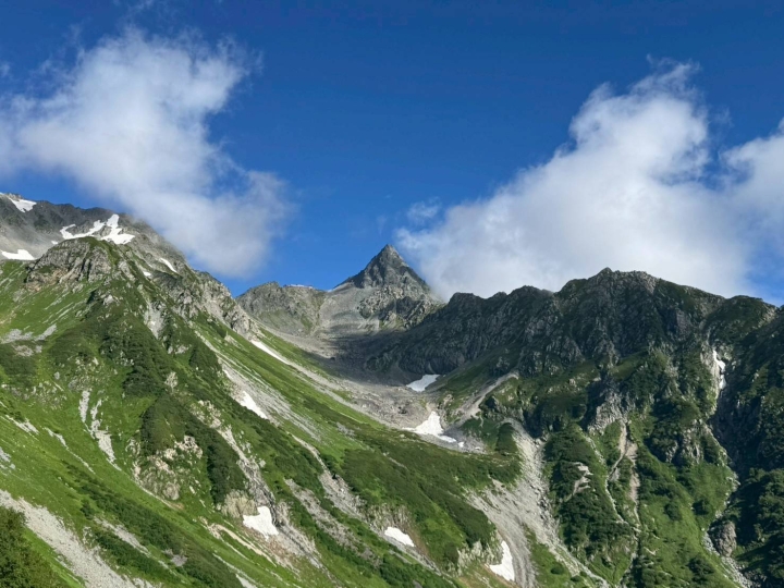 その後 急登の雪渓がありチェーンスパイク等を装着 そこまではとても蒸し暑かったのですがひんやりして気持ちが良かったです。しばらく登り山頂へ(爼嵓) そこから柴安嵓へ