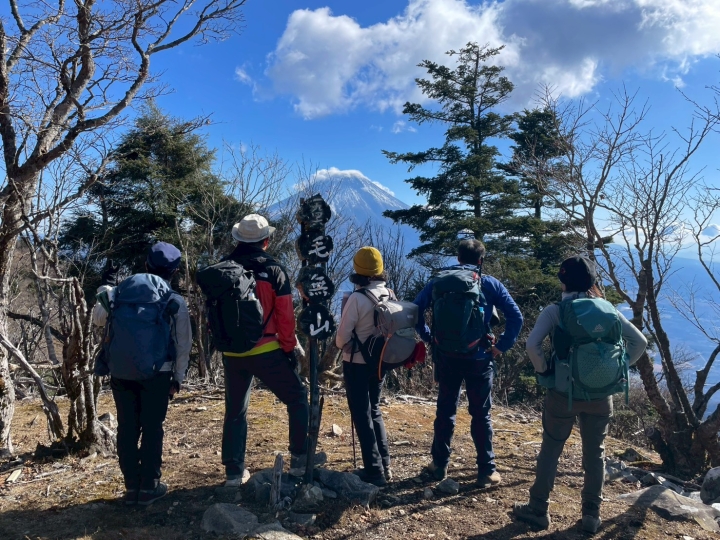 樹林帯を抜けると視界が開け、眼前に現れる富士山の姿に思わず足を止めます。毛無山山頂からの眺めは素晴らしく、これから始まる縦走への期待が一気に高まりました。