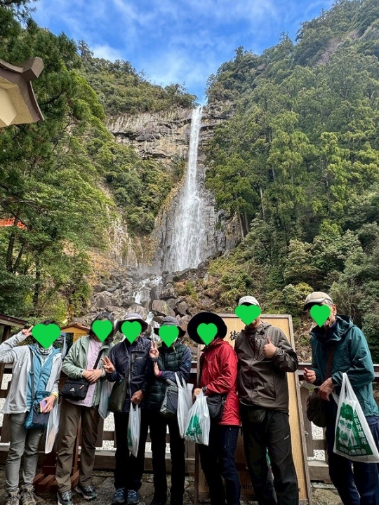 5日目: 晴れ: 朝6時、ホテルに荷物を預けて、身軽になってスタート、まずは神倉神社、参道の500段以上もある石段を朝一で息を切らせながら登りきると、神が降り立った神社があり、神々しい気持ちになれました。急坂で立派な石が積み上げられていて、前日の雨でちょっと滑りましたが、一日のスタートには最高でした。それから阿須賀神社をお参りして(こちらは階段なし)ホテルに戻って荷物を受取って、新宮駅、そして電車で那智へ、バスで熊野那智大社、那智の滝(滝そのものがご神体)、をお参りして、帰りは途中下車して大内坂(なでしこジャパンの記念碑が有ります)を散策して、バスで那智勝浦へ、みんなでランチ:生ビールと海鮮丼が美味しかったです。4時間在来線特急に揺られ名古屋駅向かいました。名古屋⇒東京⇒那須塩原⇒自宅 みなさまありがとうございました。そしてお疲れさまでした。あっという間の5日間でした。